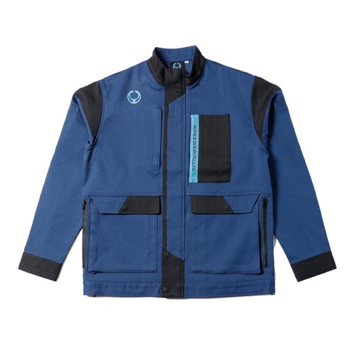 新ユニフォームのブルゾンはネイビーをメインカラーに、細部にブラックを採用。CIカラーであるブルーや会社名、ロゴは目立ちすぎない大きさや位置にこだわり、良い意味で作業服の雰囲気を無くしたスタイリッシュなデザインに。パンツは男女共に快適に着用できるシルエットや伸縮性、通気性を考えたデザインを採用し、松江土建の世界で一つのユニフォームが完成した。